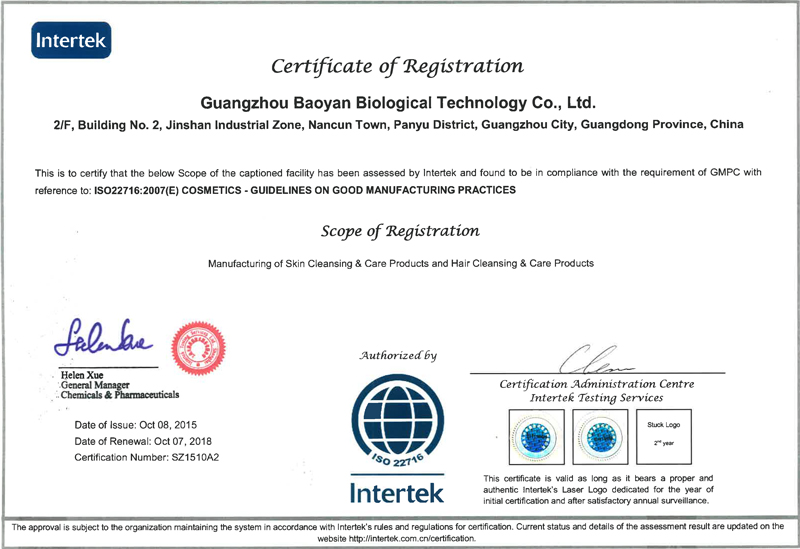 廣州葆妍生物科技有限公司位于廣州番禺金山工業園,成立于2009年,經營面積12000平方,集化妝品(護膚類、彩妝類)配方開發、生產加工于一體,專業化、規模化的化妝品OEM/ODM/OBM企業... -